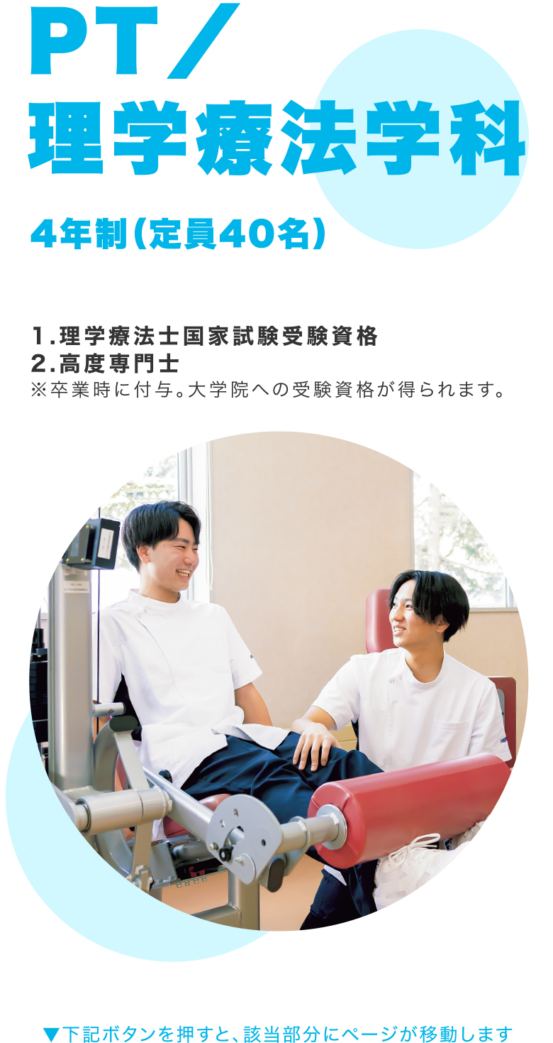 豊かな人間性を携え、自ら進んで成長する力をもち、地域医療に貢献できる理学療法士を育成するため、地域との関わりやスポーツ場面でのサポートを含めた社会貢献活動を行う機会を設けています。